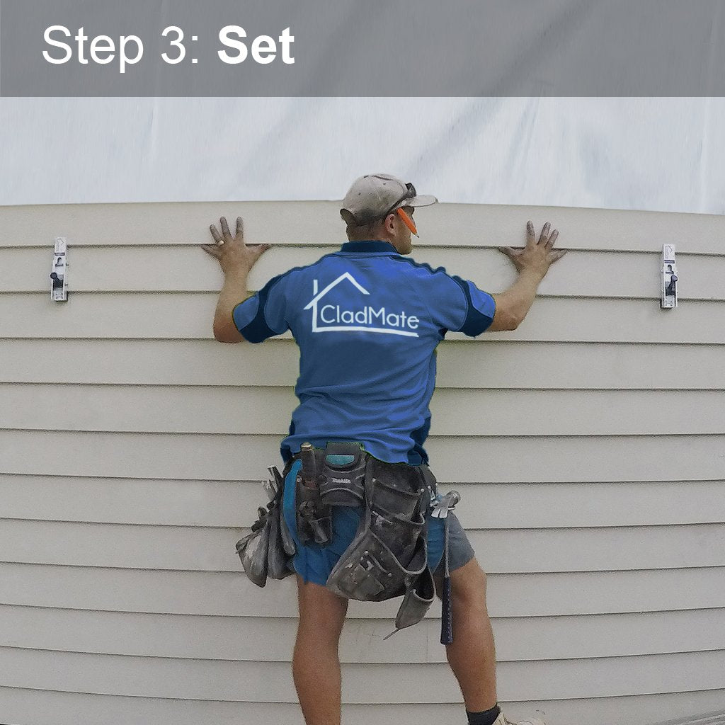 CladMates friction lock supports heavy full-length weatherboards with damage-free clamping that holds strongly and releases effortlessly.