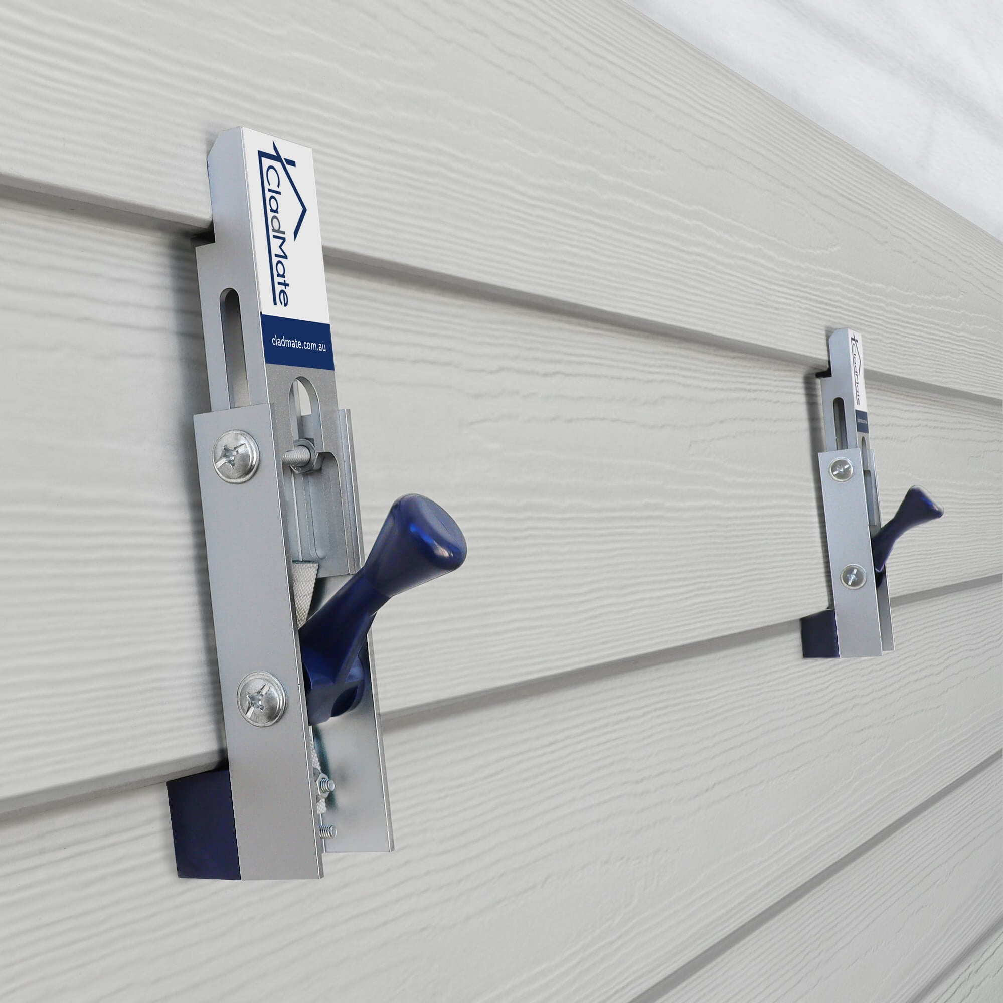 CladMates friction lock supports heavy full-length weatherboards with damage-free clamping that holds strongly and releases effortlessly.